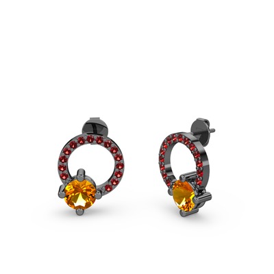 Sitrin ve garnet 925 ayar siyah rodyum kaplama gümüş küpe