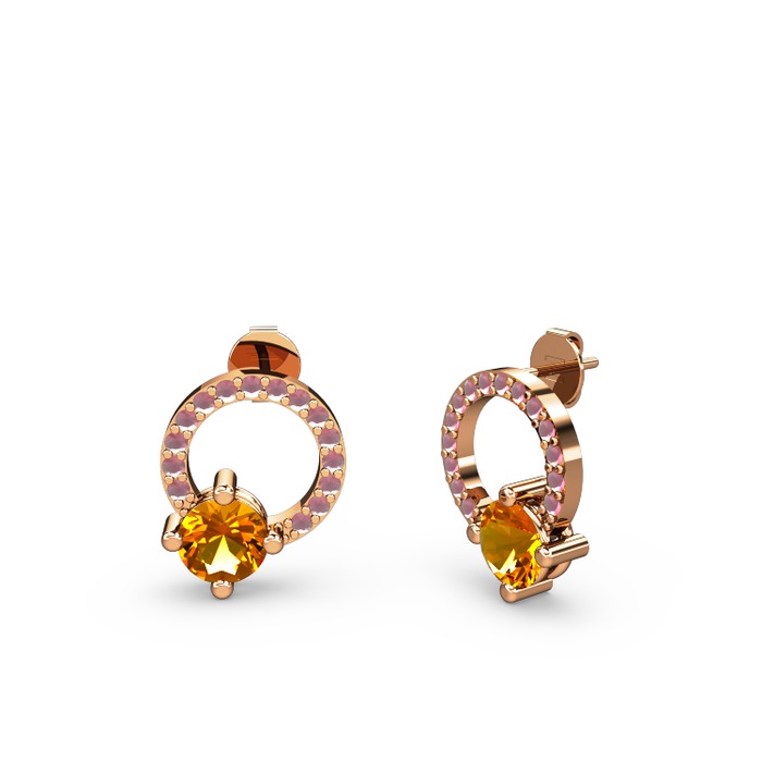 Sitrin ve kök yakut 925 ayar rose altın kaplama gümüş küpe