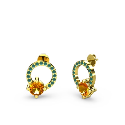 Sitrin ve kök zümrüt 8 ayar altın küpe
