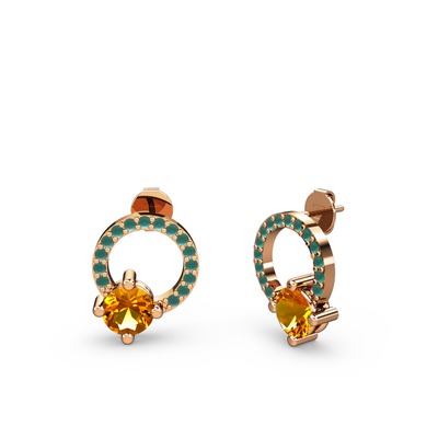 Sitrin ve kök zümrüt 925 ayar rose altın kaplama gümüş küpe
