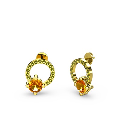 Sitrin ve peridot 925 ayar altın kaplama gümüş küpe
