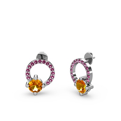 Sitrin ve rodolit garnet 14 ayar beyaz altın küpe