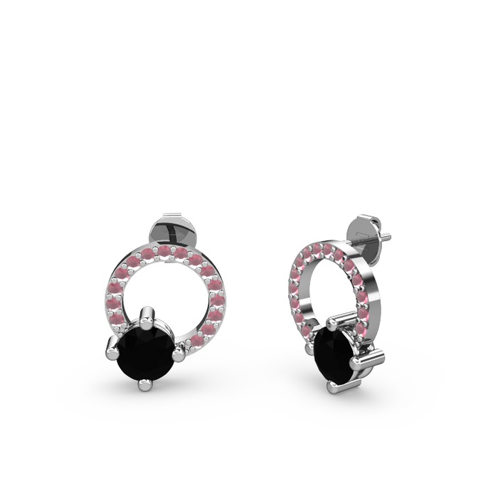 Siyah zirkon ve kök yakut 8 ayar beyaz altın küpe