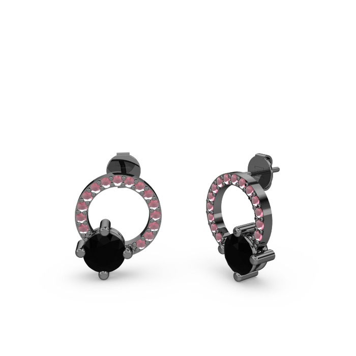 Siyah zirkon ve kök yakut 925 ayar siyah rodyum kaplama gümüş küpe