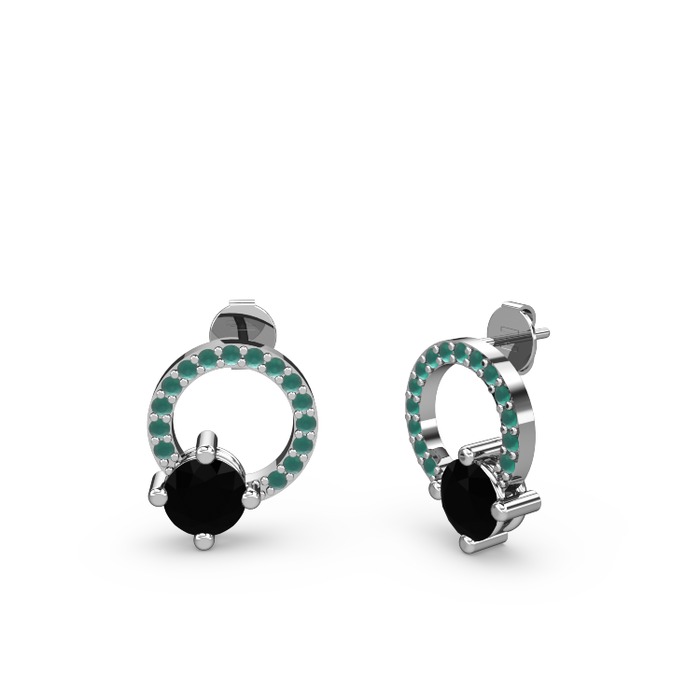 Siyah zirkon ve kök zümrüt 8 ayar beyaz altın küpe