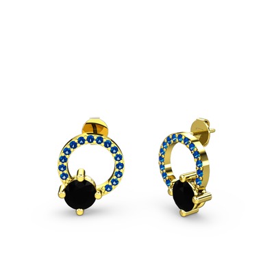 Siyah zirkon ve lab safir 925 ayar altın kaplama gümüş küpe
