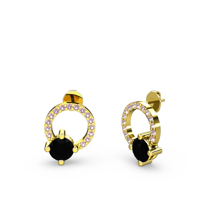 Siyah zirkon ve pembe kuvars 18 ayar altın küpe