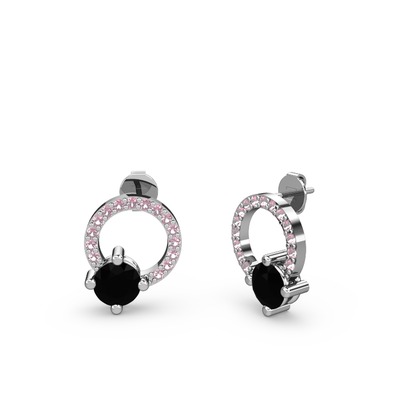 Siyah zirkon ve pembe kuvars 925 ayar gümüş küpe