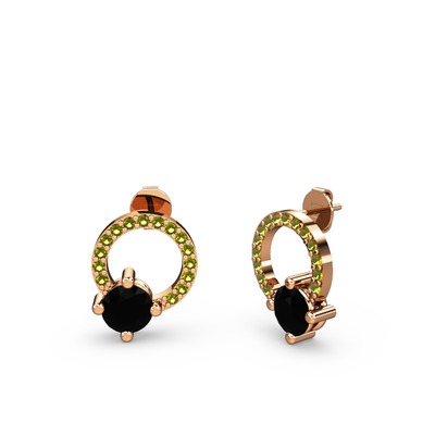 Siyah zirkon ve peridot 14 ayar rose altın küpe