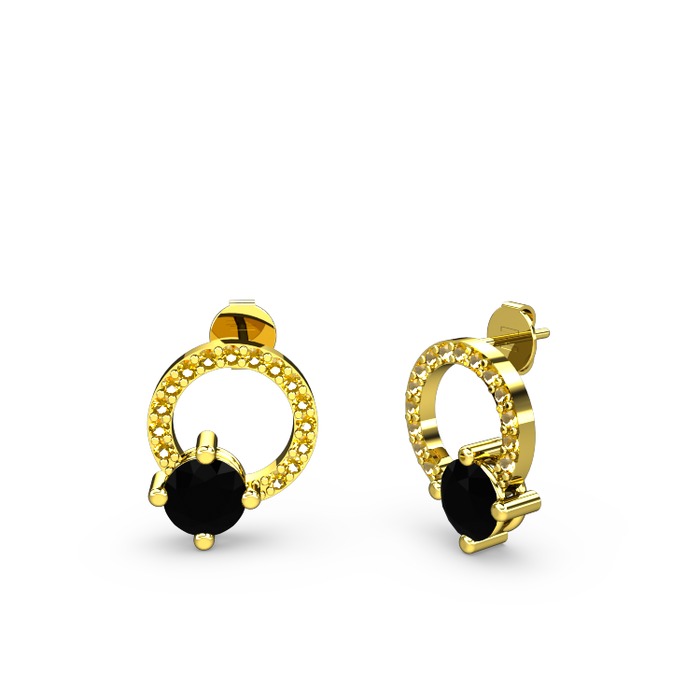 Siyah zirkon ve sitrin 925 ayar altın kaplama gümüş küpe