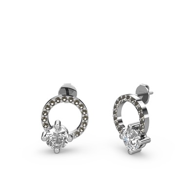Swarovski ve dumanlı kuvars 14 ayar beyaz altın küpe