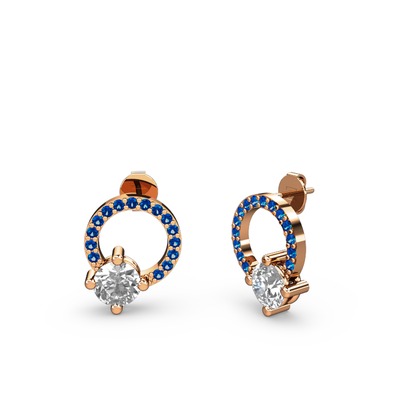 Swarovski ve lab safir 925 ayar rose altın kaplama gümüş küpe