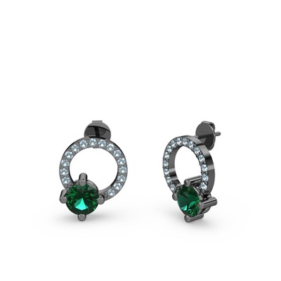 Yeşil kuvars ve akuamarin 925 ayar siyah rodyum kaplama gümüş küpe