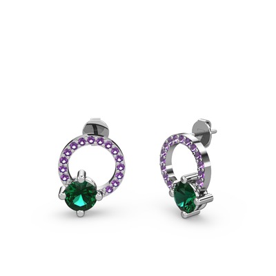Yeşil kuvars ve ametist 925 ayar gümüş küpe