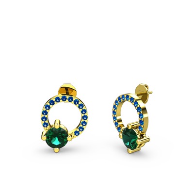 Yeşil kuvars ve lab safir 8 ayar altın küpe