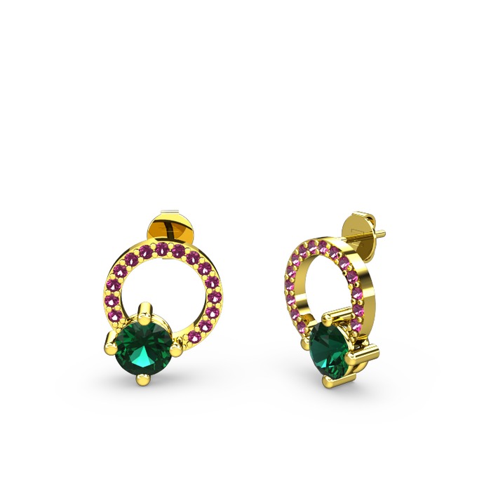 Yeşil kuvars ve rodolit garnet 14 ayar altın küpe