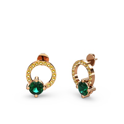 Yeşil kuvars ve sitrin 925 ayar rose altın kaplama gümüş küpe