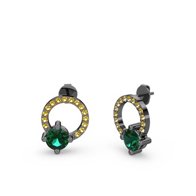 Yeşil kuvars ve sitrin 925 ayar siyah rodyum kaplama gümüş küpe