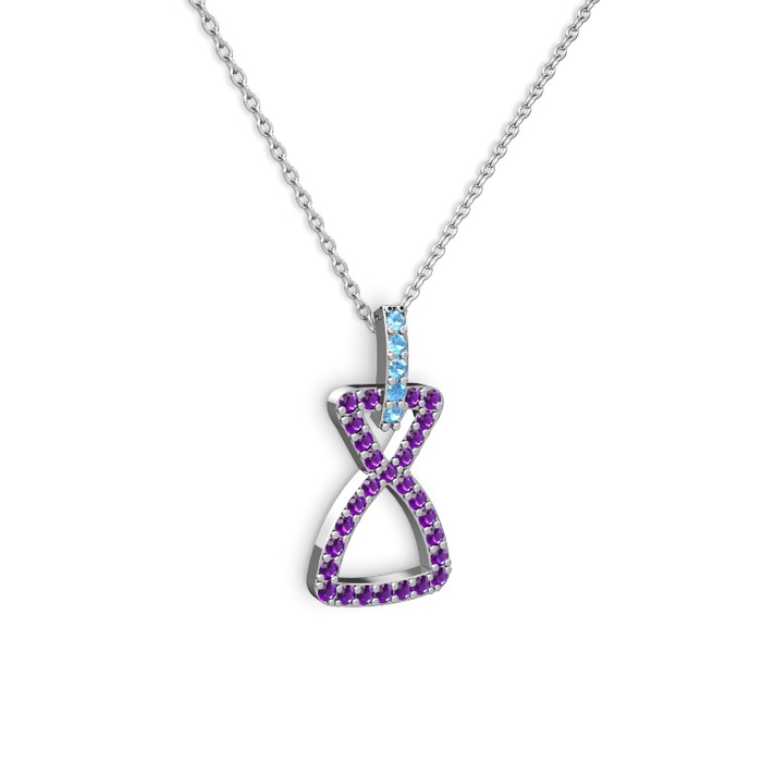 Akuamarin ve ametist 18 ayar beyaz altın kolye (40 cm beyaz altın rolo zincir)