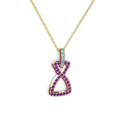 Akuamarin ve ametist 8 ayar rose altın kolye (40 cm altın rolo zincir)