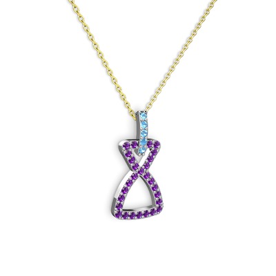 Akuamarin ve ametist 925 ayar gümüş kolye (40 cm altın rolo zincir)