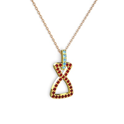 Akuamarin ve garnet 925 ayar altın kaplama gümüş kolye (40 cm rose altın rolo zincir)