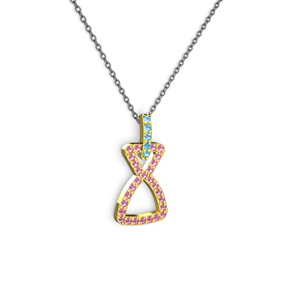 Akuamarin ve pembe kuvars 18 ayar altın kolye (40 cm gümüş rolo zincir)