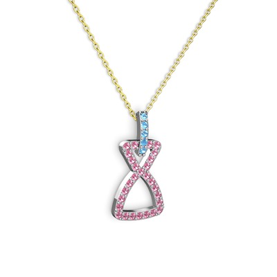 Akuamarin ve pembe kuvars 8 ayar beyaz altın kolye (40 cm altın rolo zincir)