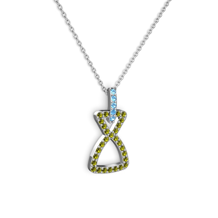 Akuamarin ve peridot 18 ayar beyaz altın kolye (40 cm beyaz altın rolo zincir)