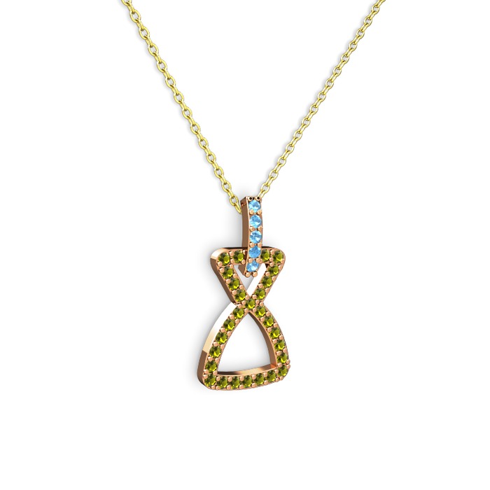 Akuamarin ve peridot 18 ayar rose altın kolye (40 cm altın rolo zincir)