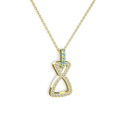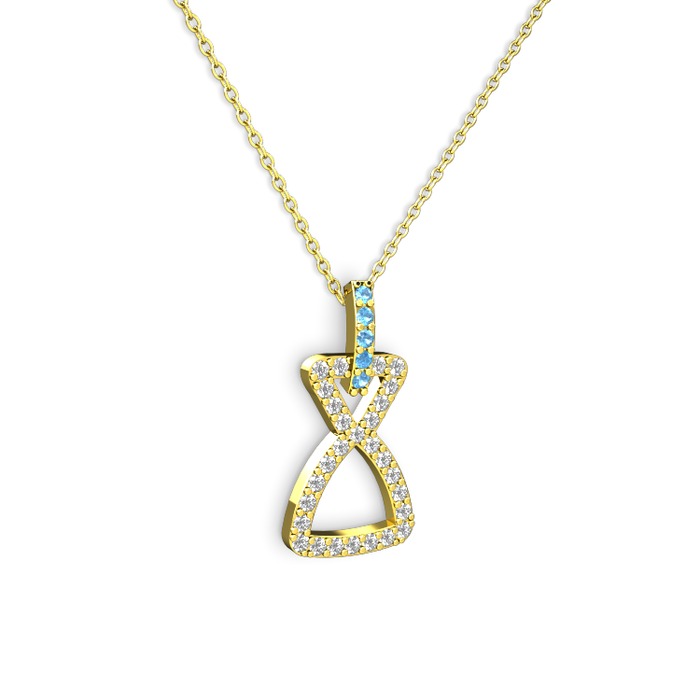 Akuamarin ve pırlanta 14 ayar altın kolye (0.374 karat, 40 cm altın rolo zincir)