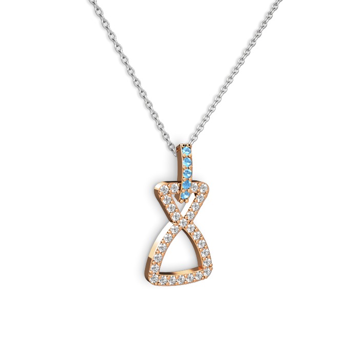 Akuamarin ve pırlanta 18 ayar rose altın kolye (0.374 karat, 40 cm gümüş rolo zincir)