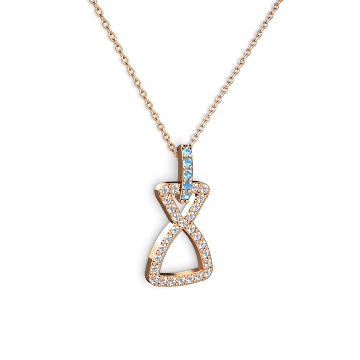 Akuamarin ve pırlanta 925 ayar rose altın kaplama gümüş kolye (0.374 karat, 40 cm gümüş rolo zincir)