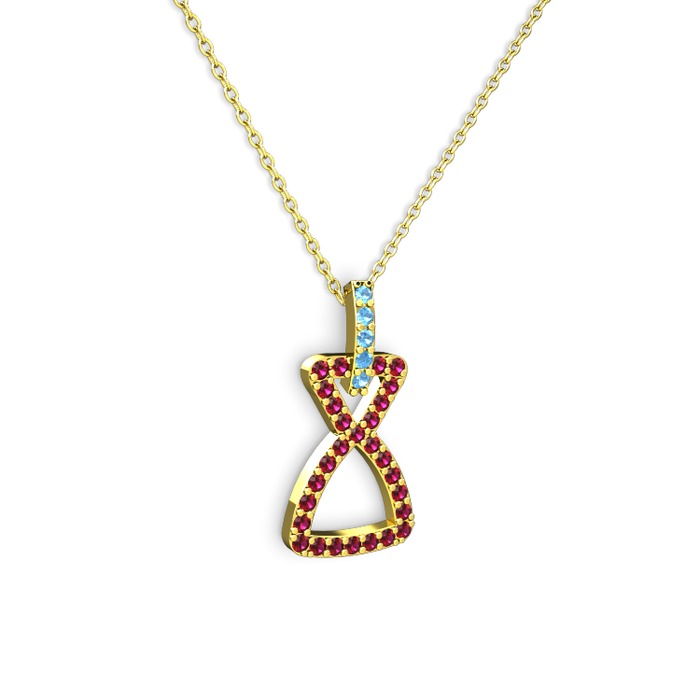 Akuamarin ve rodolit garnet 18 ayar altın kolye (40 cm altın rolo zincir)