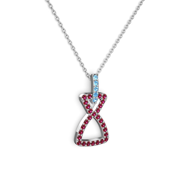 Akuamarin ve rodolit garnet 925 ayar gümüş kolye (40 cm beyaz altın rolo zincir)