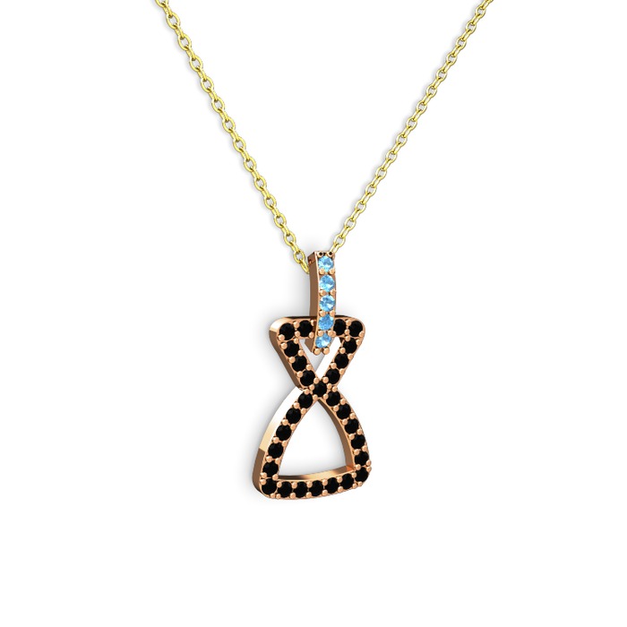 Akuamarin ve siyah zirkon 18 ayar rose altın kolye (40 cm altın rolo zincir)