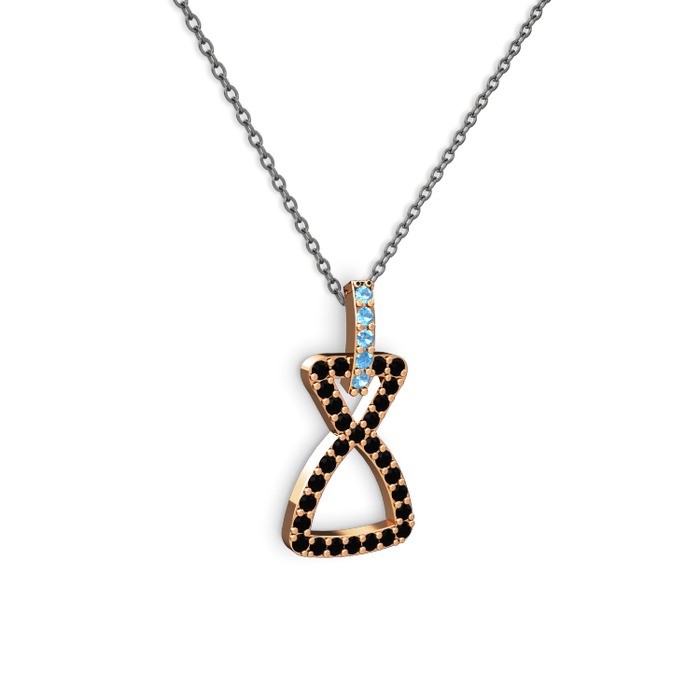 Akuamarin ve siyah zirkon 8 ayar rose altın kolye (40 cm gümüş rolo zincir)