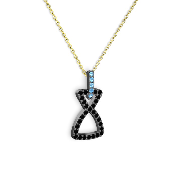 Akuamarin ve siyah zirkon 925 ayar siyah rodyum kaplama gümüş kolye (40 cm altın rolo zincir)