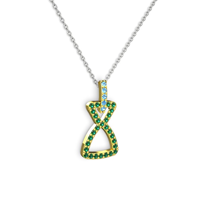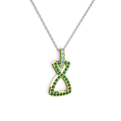 Akuamarin ve yeşil kuvars 14 ayar altın kolye (40 cm beyaz altın rolo zincir)