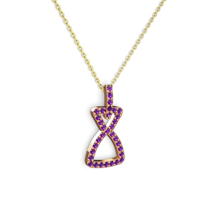 Ametist 14 ayar rose altın kolye (40 cm altın rolo zincir)