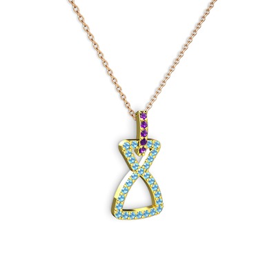 Ametist ve akuamarin 18 ayar altın kolye (40 cm rose altın rolo zincir)