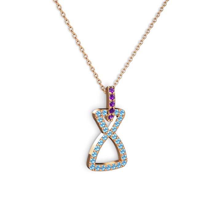 Ametist ve akuamarin 18 ayar rose altın kolye (40 cm rose altın rolo zincir)