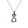 Ametist ve akuamarin 925 ayar siyah rodyum kaplama gümüş kolye (40 cm rose altın rolo zincir)