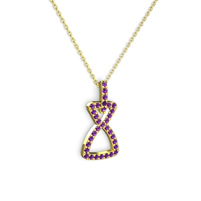 Ametist 925 ayar altın kaplama gümüş kolye (40 cm gümüş rolo zincir)