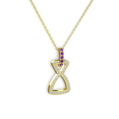 Ametist ve beyaz zirkon 8 ayar altın kolye (40 cm altın rolo zincir)