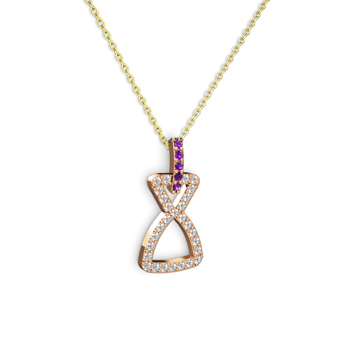 Ametist ve beyaz zirkon 925 ayar rose altın kaplama gümüş kolye (40 cm gümüş rolo zincir)
