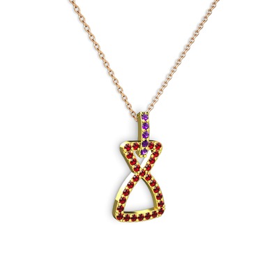 Ametist ve garnet 18 ayar altın kolye (40 cm rose altın rolo zincir)