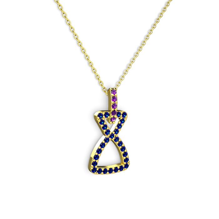 Ametist ve lab safir 18 ayar altın kolye (40 cm altın rolo zincir)