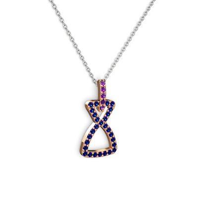 Ametist ve lab safir 8 ayar rose altın kolye (40 cm beyaz altın rolo zincir)