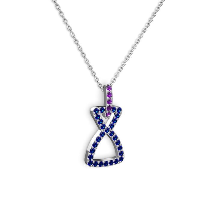 Ametist ve lab safir 925 ayar gümüş kolye (40 cm beyaz altın rolo zincir)